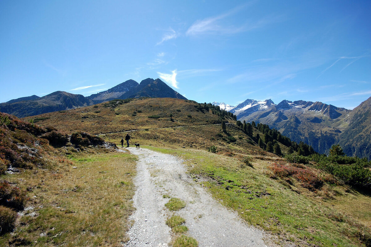 Der Plattenkogel ist wie eine Aussichtsplattform im Krimml Wasserfalldorf und bietet herrliche Ausblicke auf die Hohen Tauern, die Zillertaler Alpen und die Kitzbüheler Alpen.