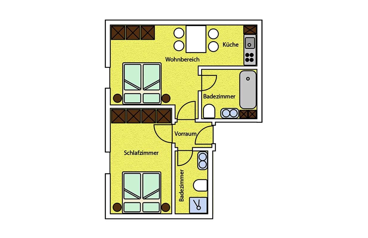 | TYP B (2 Raum Luxusappartement ohne Balkon) | € 95,00 | € 105,00 | € 132,00 |